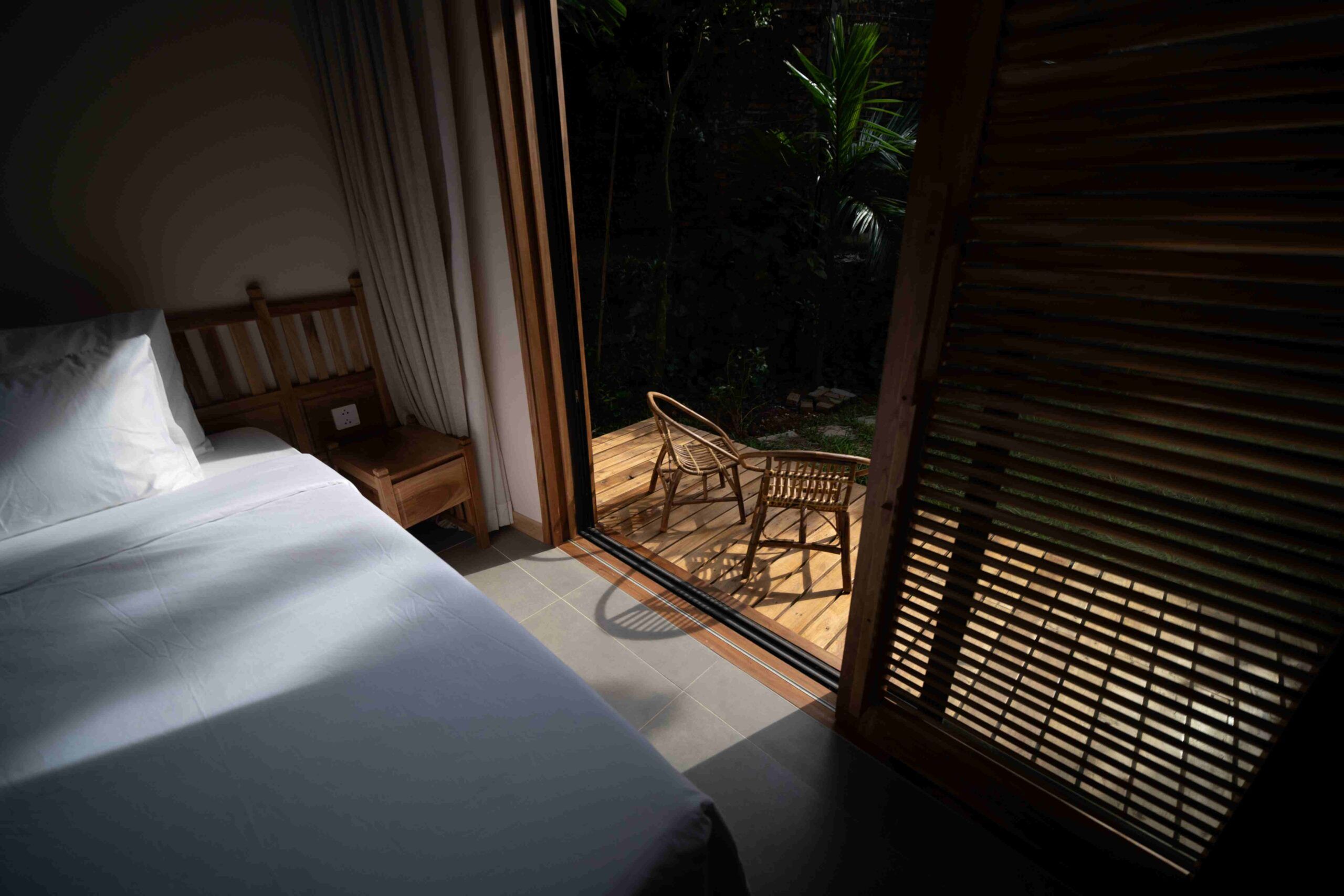 - Được thiết kế tối giản với giường ngủ sang trọng trong tông màu trung tính và đồ nội thất bằng gỗ tự nhiên với các họa tiết truyền thống.