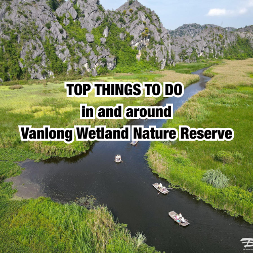 Van Long Wetland Nature Reserve (“Vanlong Wetland”) in Ninh Binh, or the “Halong bay on land,” the habitat of critically endangered white pant langur and international station for migratory birds, features 4 distinct seasons—spring, summer, autumn, and winter — each with unique beauty and charm throughout the year. Featured by stunning limestone karsts rising from emerald wandering rivers, lush rice fields, friendly local peole and tranquil villages and of course, tasty authentic local cuisines. Lush rice fields and green in Spring, Summer of vibrant lotus blossoms; Autumn of dream pink and red water lilies, golden rice paddies and winter of migratory birds.