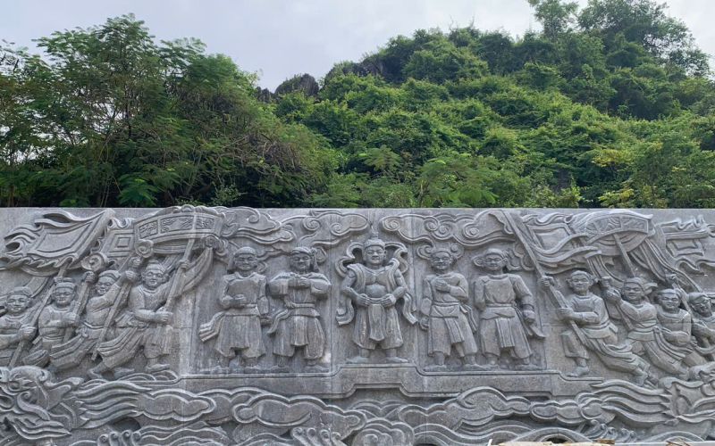 Biking and learning about the first army base of the first Dinh dynasty of Vietnam while enjoying a tranquil limestone valley, typical traditional temple architecture.