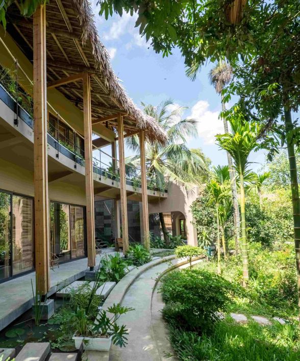 all rooms are designed in an arrow shape looking over to the countryside garden, where you can feel the seasonal transition thru the scents and colors of grapefruit, lemon, palm tree, lotus and other typical plants in the North of Vietnam. A mini wetland is right at your doorstep, where you can touch the nature.