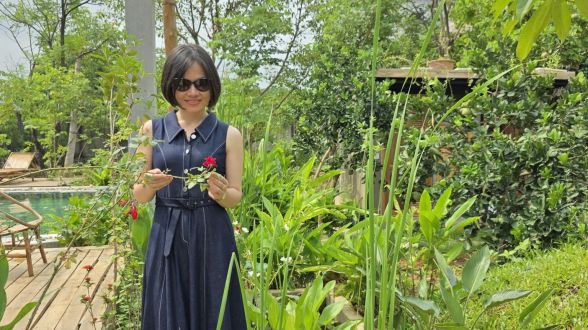 Trước hiên nhà là 1 vườn quê bắc bộ và sàn BBQ nơi bạn và gia đình có thể cùng nhau làm vườn, thưởng thức các món nướng do mình tự tay làm hay cùng nhau phá cỗ trung thu và ngắm trăng. Một số cây gia vị luôn sẵn có tại vườn.