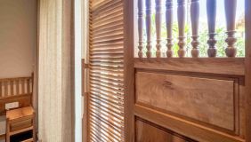 Được thiết kế theo lối nhà cấp 4 truyền thống với mái ngói đỏ và hệ vì kèo gỗ.