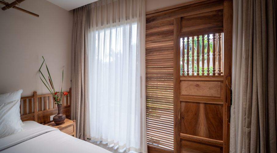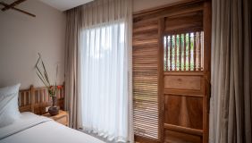 Được thiết kế tối giản với giường ngủ sang trọng trong tông màu trung tính và đồ nội thất bằng gỗ tự nhiên với các họa tiết truyền thống. Mặt trước hình cánh cung nhìn ra Đất Ngập Nước, Đầm Vân Long. Trước hiên các phòng tầng 1 là hệ bể cây thủy sinh mô phỏng hệ sinh thái đất ngập nước Vân Long với nhiều loài cây và hoa đặc trưng có tác dụng lọc nước, điều hòa không khí, hấp thụ CO2 và là “nhà ở” của nhiều loài động vật thủy sinh như tôm cua cá, mang đến cảm giác như “chạm vào thiên nhiên”.