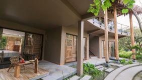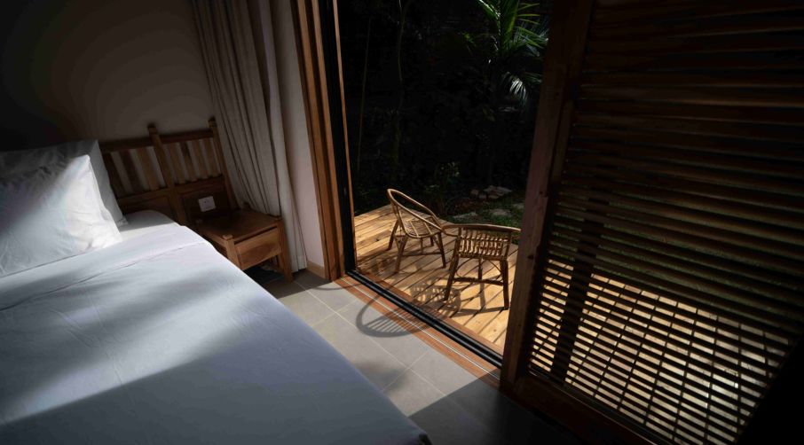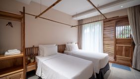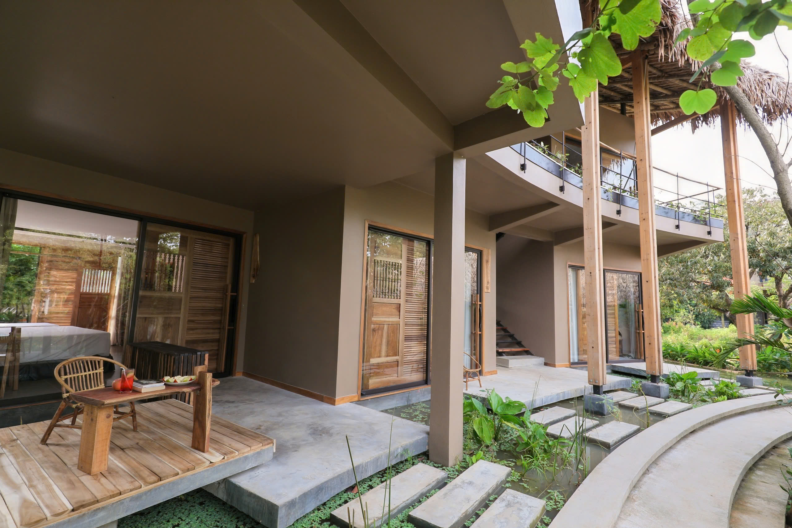 Với điểm nhấn là công viên đất ngập nước thu nhỏ tiếp giáp hiên và ở vườn trước, các phòng tầng 1, được bố trí tách biệt với tính riêng tư cao sẽ phù hợp với những tâm hồn ưa thích thiên nhiên hoang sơ cũng như những khoảnh khắc riêng tư và yên bình. Được thiết kế tối giản với giường ngủ sang trọng trong tông màu trung tính và đồ nội thất bằng gỗ tự nhiên với các họa tiết truyền thống.
