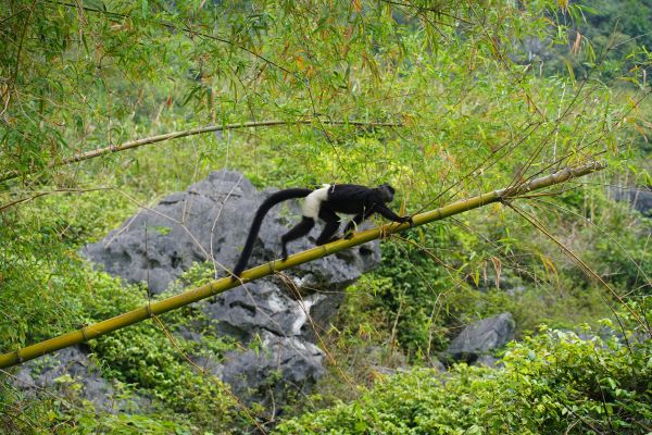 Bạn hãy dẫn dắt con quan sát, khám phá, đặt ra vô vàn các câu hỏi mang tính gợi mở, không hề ép buộc trong quá trình quát sát: núi đá vôi được hình thành như thế nào, vì sao nó lại bị mòn, núi đá vôi có màu gì trong mối tương quan với màu lông và đặc điểm của loài voọc (voọc có màu gì, voọc con có màu gì? chúng ăn gì, chúng ngủ ở đâu, để thích ứng môi môi trường sống là vách núi đá vôi sắc nhọn, chúng đã tiến hóa đôi bàn chân, bàn tay, đuôi như thế nào? Voọc giống con người ở đặc điểm gì, chúng có tình cảm không, chúng sinh nở như thế nào vv và vv, hoặc cùng con đi chạm, sờ, ngửi và cảm nhận các loại lá, hoa, cảm nhận và phân biệt sự khác nhau về mùi, vị, texture, hình dáng vv và vv.