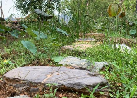 Trước hiên các phòng khách là hệ bể cây thủy sinh mô phỏng hệ sinh thái đầm Vân Long với một số loại sinh vật điển hình như đuôi lươn, bạch thủy tiên, súng, bóng nước, cá rô, cua và trai nước ngọt sinh sống ẩn trong bùn, nước và dưới tán cây.