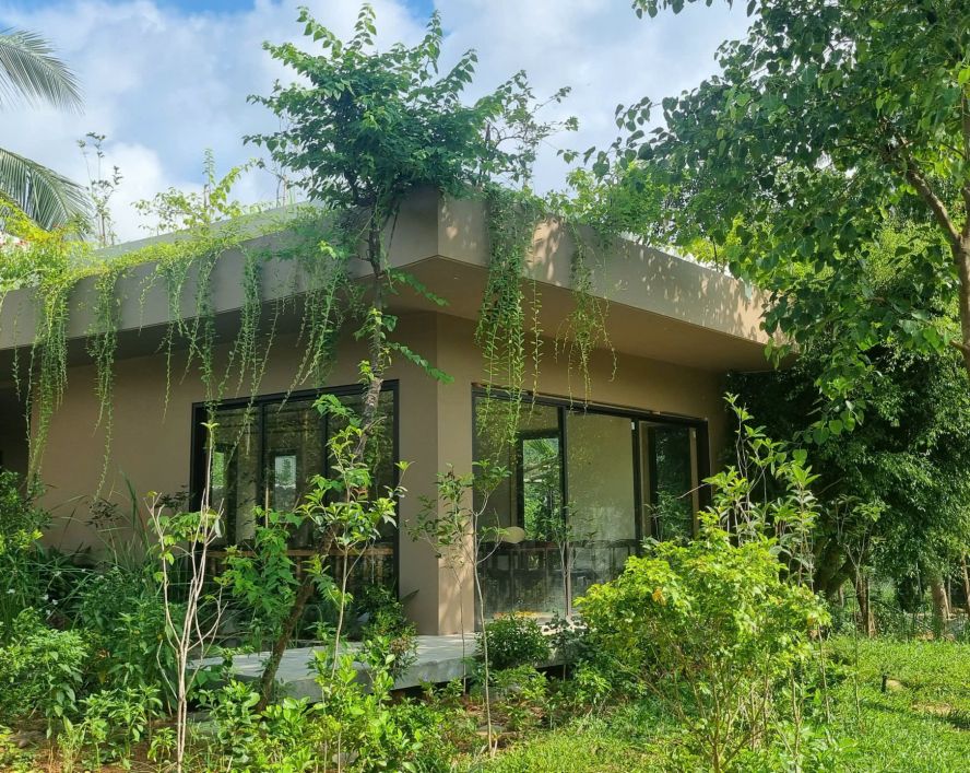 .Được thiết kế theo lối nhà cấp 4 truyền thống với mái ngói đỏ và hệ vì kèo gỗ, gồm 1 phòng ngủ với 1 giường đôi, 1 phòng tắm tiện nghi với vòi sen có đèn sưởi, bồn tắm, điều hòa, sàn tập yoga, trà đạo, sàn BBQ và vườn trên cao, nơi bạn và gia đình có thể cùng nhau làm vườn, thưởng thức các món nướng do mình tự tay làm hay cùng nhau phá cỗ trung thu và ngắm trăng. Một số cây gia vị luôn sẵn có tại vườn.