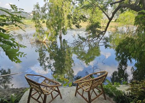 Nếu như ở tầng một, từ trong phòng ngủ, bạn có thể chạm vào thiên nhiên của hệ sinh thái ngập nước và vườn quê bắc bộ thì từ trên tầng 2, bạn lại có thể nhìn bao quát quang cảnh tuyệt đẹp của khu bảo tồn Vân Long gồm núi non, hệ rừng trên núi và đầm nước.