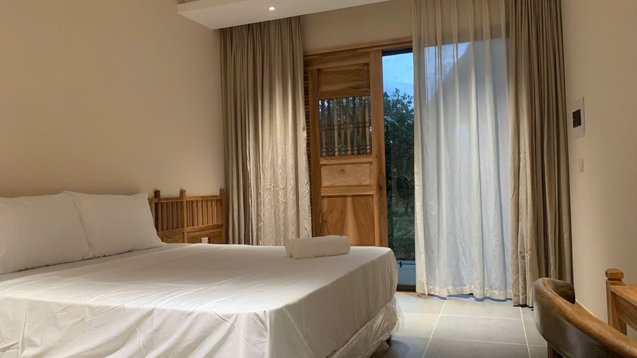.Được thiết kế tối giản với giường ngủ sang trọng trong tông màu trung tính và đồ nội thất bằng gỗ tự nhiên với các họa tiết truyền thống.